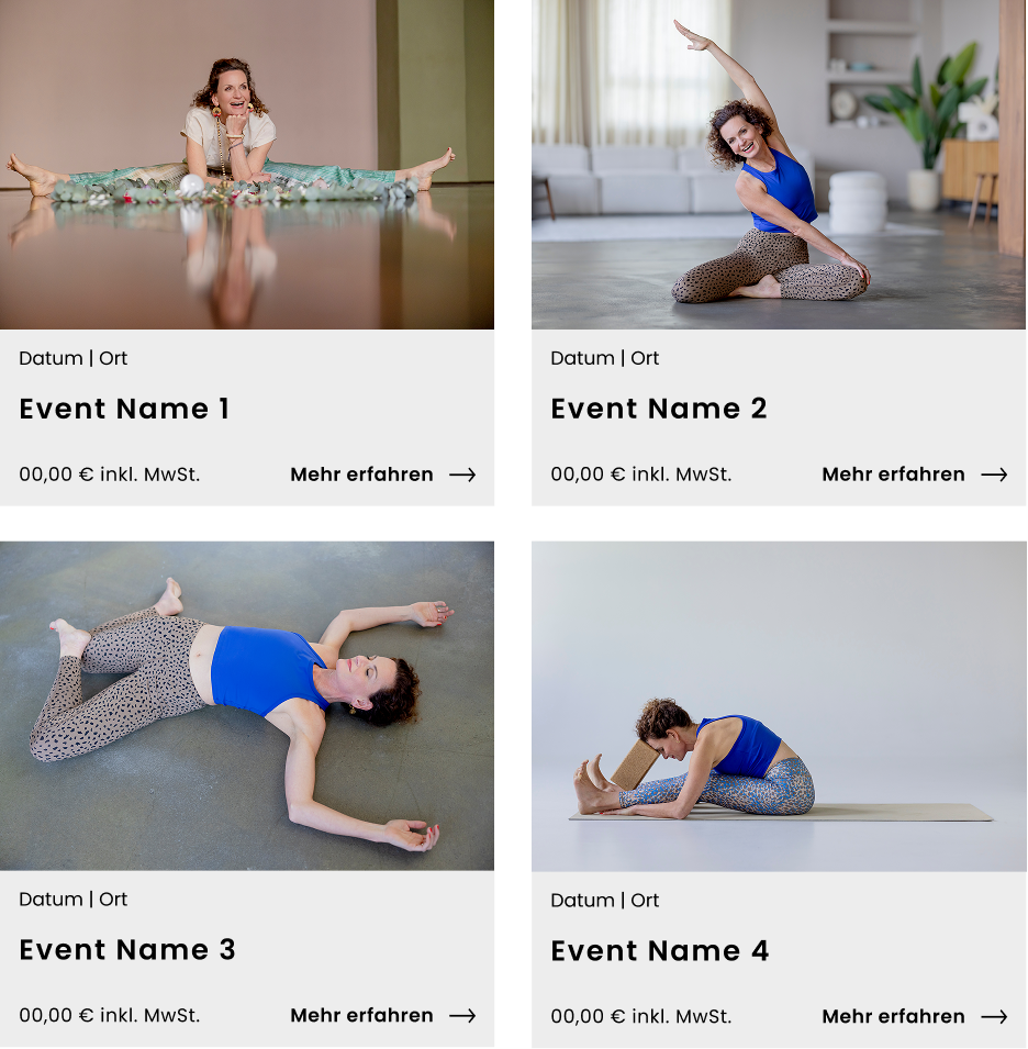 Vertiefe dein Wissen als Yogalehrer*in in meinen Fortbildungen— oder triff mich live auf Yoga-Festivals und Events überall in Deutschland und darüber hinaus.